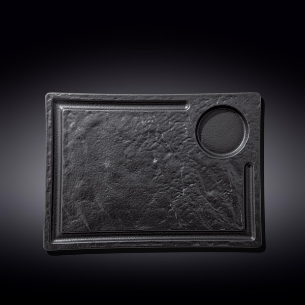 Блюдо для подачи 325*230 мм. с выемкой для соусника d=80 мм. Слэйт Wilmax /2/12/