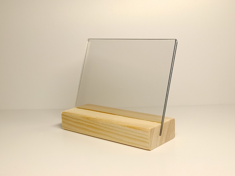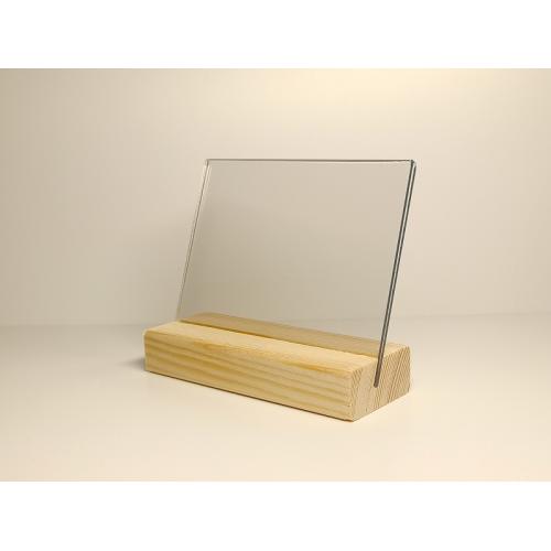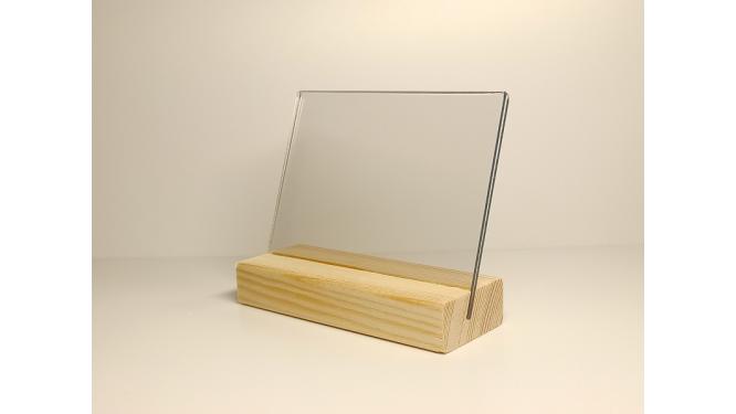 string(407) "Держатель ценника на деревянном основании с прорезью под углом для прозрачной вставки размером 105х74 мм, для вложения формата А7. Универсальное изделие, которое оригинально представит информацию.