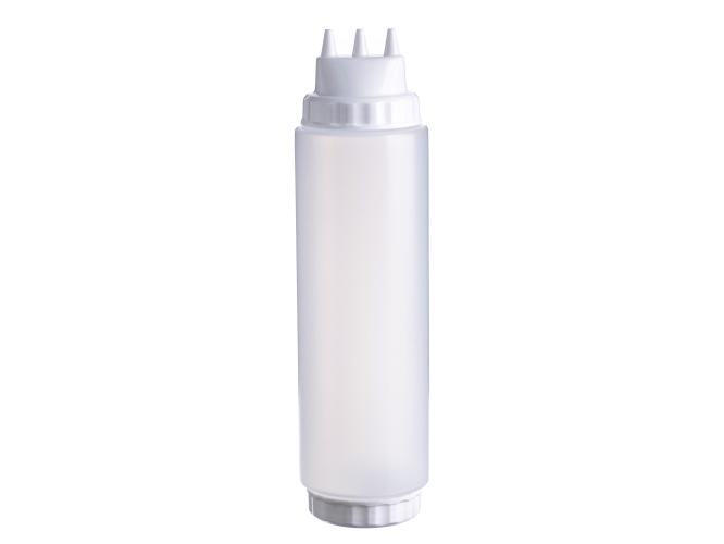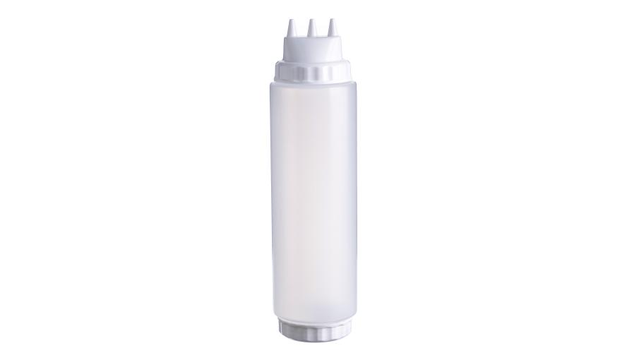 Емкость для соуса 1000 мл выполнена из прочного пищевого пластика и предназначена для профессионального использования в сегменте HoReCa. Конструкция с двумя откручивающимися крышками обеспечивает удобство наполнения, использования и ухода. Тройной дозирующий носик позволяет быстро и точно распределять содержимое. Белый цвет служит маркировкой для майонеза и других белых соусов. Прозрачный корпус облегчает визуальный контроль содержимого. Подходит для мытья в посудомоечной машине.