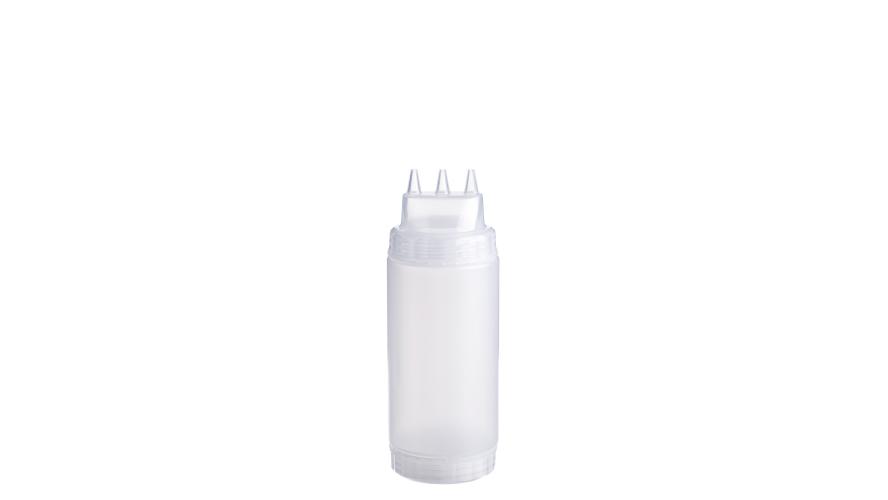 Емкость для соуса 500 мл выполнена из прочного пищевого пластика и предназначена для профессионального использования в сегменте HoReCa. Конструкция с двумя откручивающимися крышками обеспечивает удобство наполнения, использования и ухода. Тройной дозирующий носик позволяет быстро и точно распределять содержимое. Прозрачный цвет служит универсальной маркировкой и облегчает визуальный контроль содержимого. Подходит для мытья в посудомоечной машине.