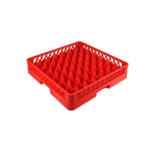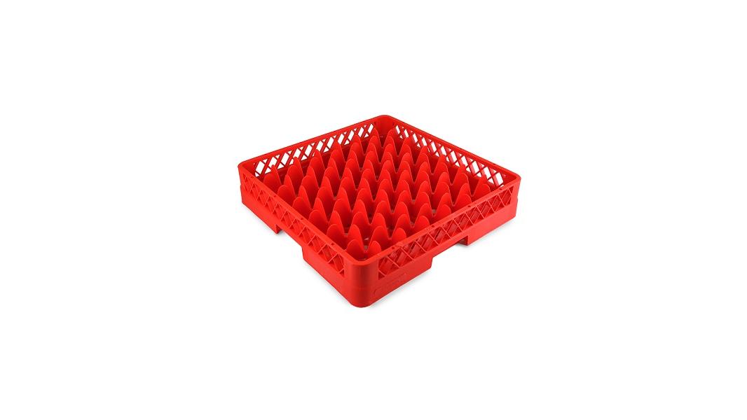 Кассета для фужеров 49 секций, красная (полипропилен) используется для мытья одноразмерной посуды (фужеров, бокалов и др.), кухонного инвентаря, столовых приборов на профессиональной кухне предприятий общественного питания. Кассеты имеют стандартные размеры, что позволяет использовать их во всех существующих профессиональных посудомоечных машинах: фронтального, купольного и туннельного типа. Максимальный диаметр посуды для размещения в ячейках кассеты 63 мм. Помимо мойки, кассеты используются для хранения и транспортировки посуды из моечной зоны в зону раздачи, что позволяет избежать её загрязнения и значительно уменьшить бой посуды.