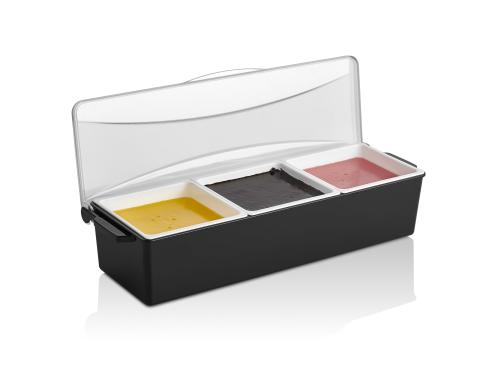 Контейнер для фруктов, специй и соусов 3 отд. по 0,85 л. черный, пластик. GP /1/12/