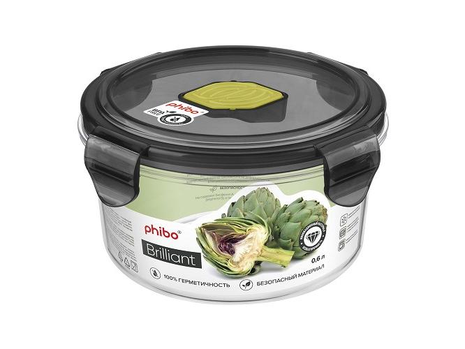 Контейнер для прод. круглый 0,6 л. d=12,5 см. h=6,5 см.герметич.с клапаном "Бриллиант"/1/12/