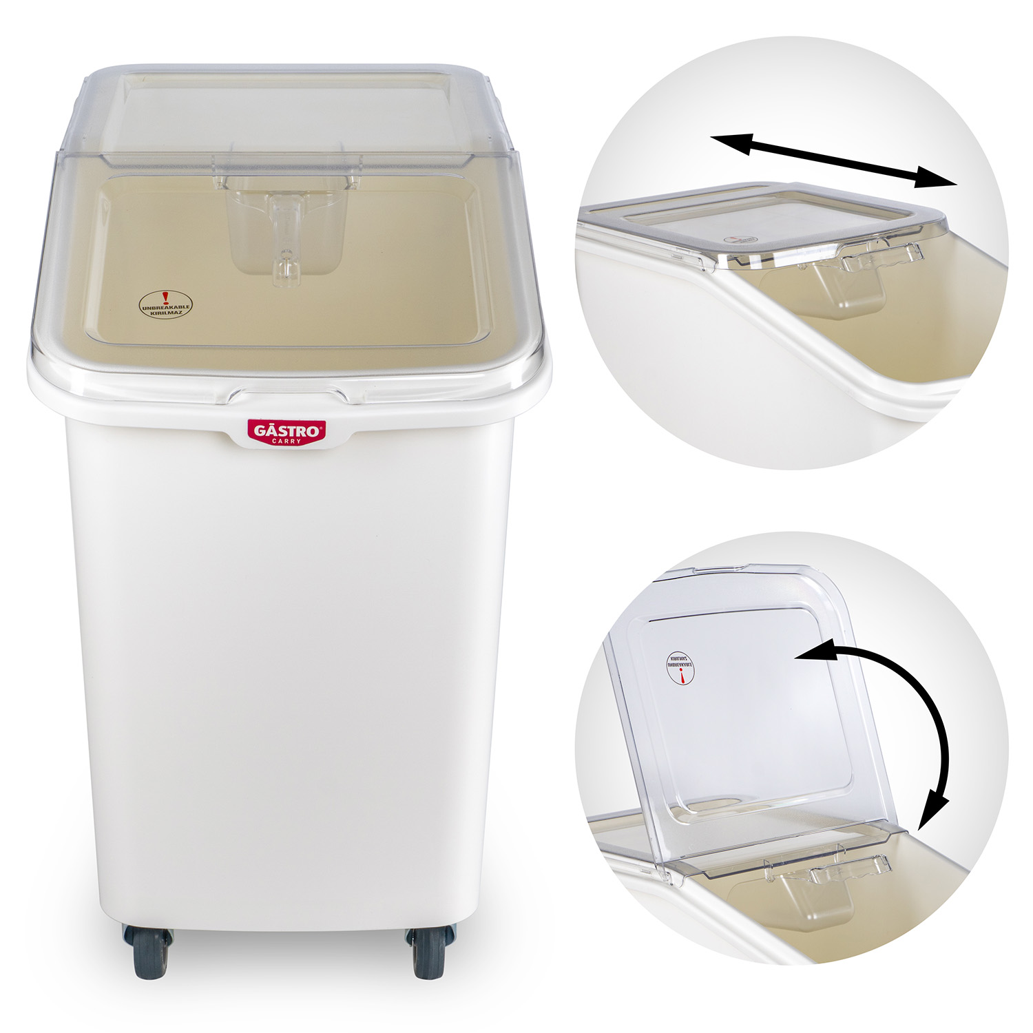Контейнер для сыпучих продуктов 102 л 420*720*710 мм. (-40°C /+70°C) п/п на колесах, с совком, белый GP /1/3/18/