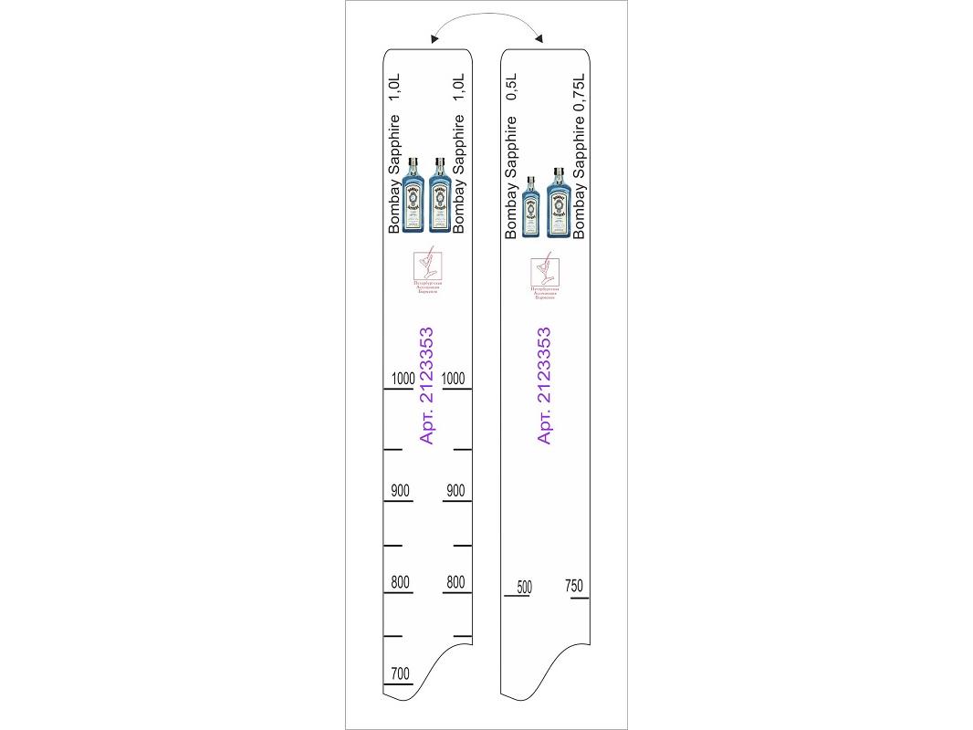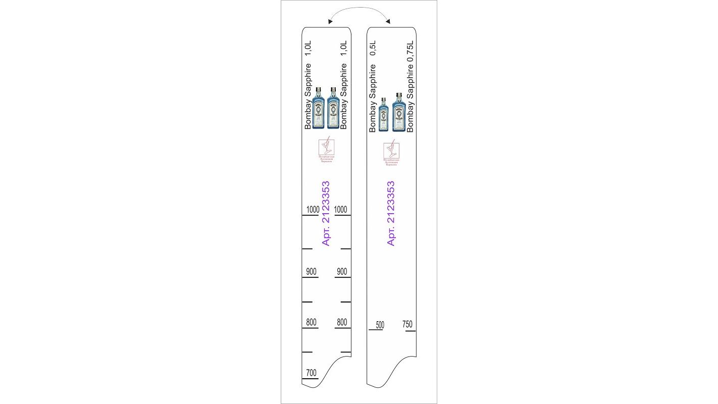 Линейка Bombay Sapphire (0.5 л./0.75 л./1 л.) L=28 см. В=2 см. /1/