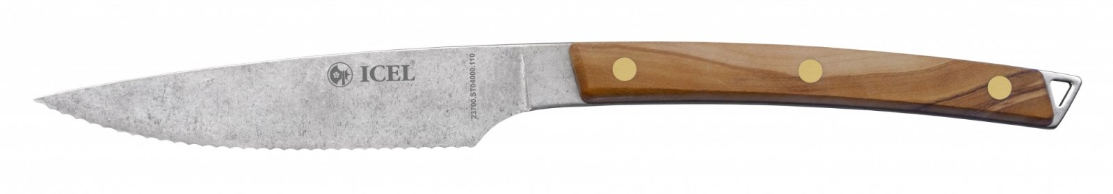 Нож для стейка 110/235 мм. 18/0 2,5 мм. состаренный ручка оливковое дерево Icel /1/6/
