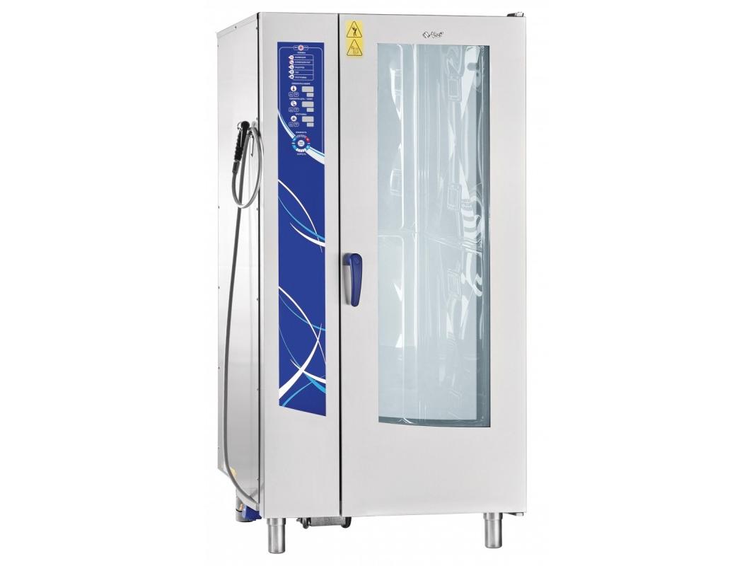 Пароконвектомат Abat ПКА 20-1/1 ПМ2 (автоматическая мойка) бойлерного типа, предназначен для приготовления различных блюд методом обработки паром и горячим воздухом: обжаривания, приготовления на пару, бланширования, запекания и других видов тепловой обработки продуктов на предприятиях общественного питания и торговли.