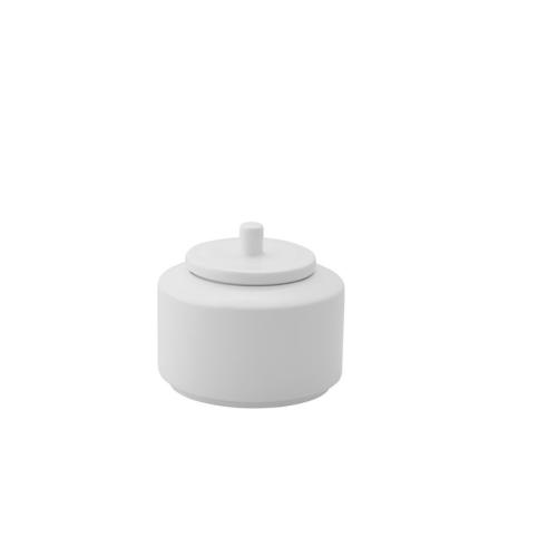 Сахарница белого цвета со сливочным оттенком.
