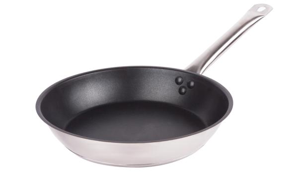Сковорода из нержавеющей стали с толстым дном и тефлоновым покрытием используется для тушения, обжарки и томления ингредиентов.