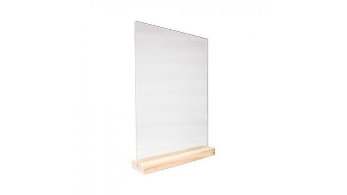 Табличка 150*210 мм. А5 пласт. вертикал. прозрач. тейбл тент на дерев. подставке /1/5/25/