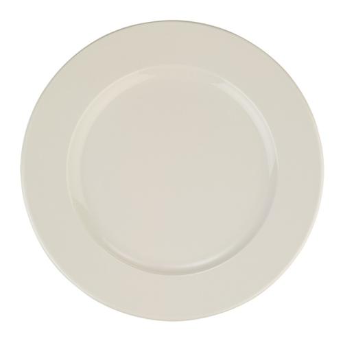 Тарелка белого цвета со сливочным оттенком.