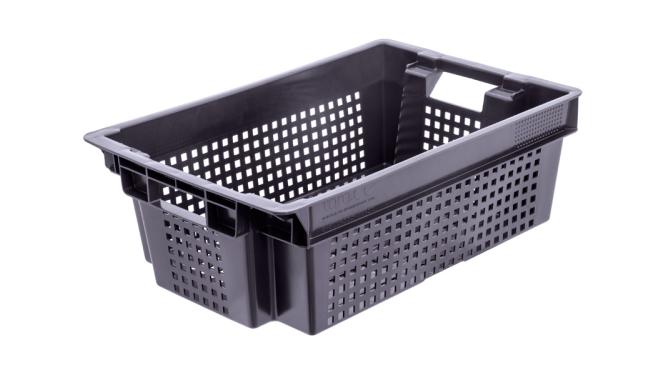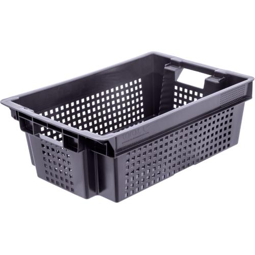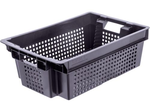 Ящик 600*400*200 мм. для овощей конусный перфорир. дно перфоир., черный (крышка 70254,71985) /1/140/